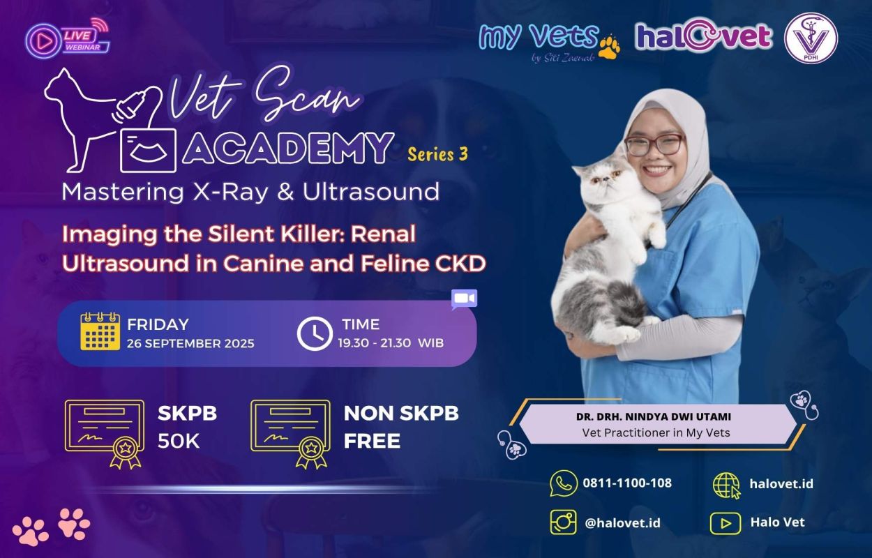 Webinar ini dirancang untuk memperdalam pemahaman tentang penggunaan ultrasonografi ginjal sebagai bagian penting dari diagnosis dan pemantauan CKD pada pasien anjing dan kucing. Materi mencakup pendekatan teknis, interpretasi citra, serta pembahasan kasus nyata di lapangan.