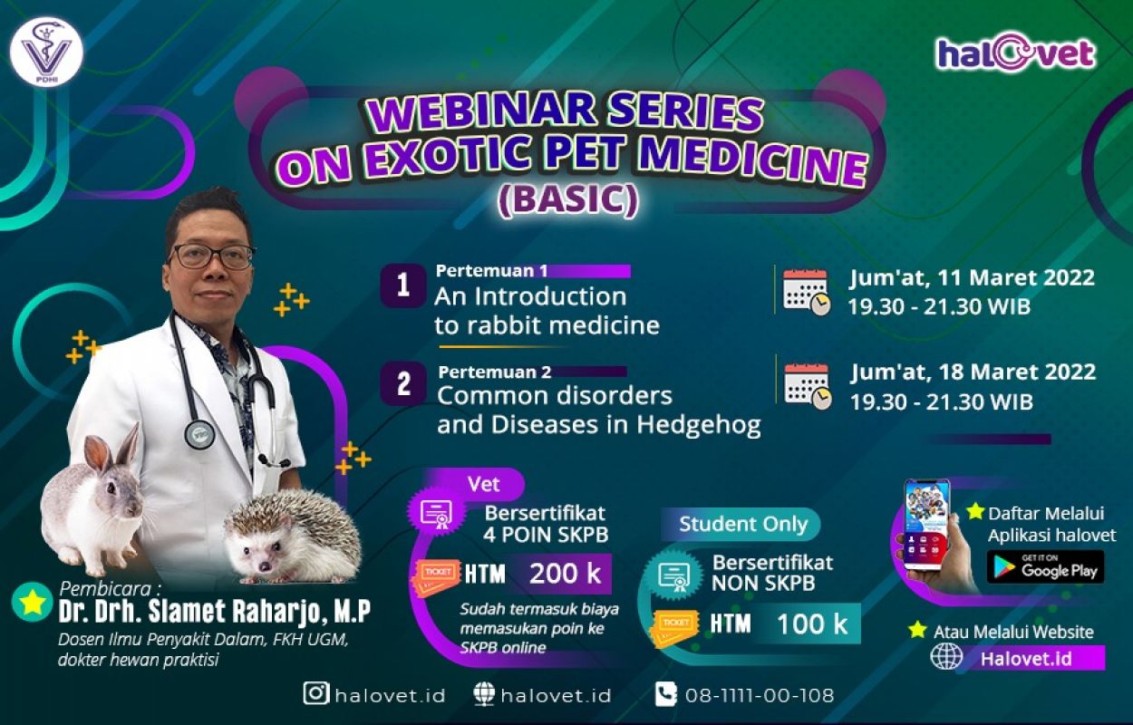 Semua akan dibahas tuntas oleh ahlinya pada Webinar Series On Exotic Pet Medicine (Basic) : Rabbit and Hedgehog yang akan dilaksanakan pada